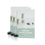 Setul conține 3 buc capete de rolă din Aventurin Verde și 3 carduri informative în limba engleză, care descriu beneficiile acestei pietre și uleiurile esențiale recomandate pentru utilizare împreună.