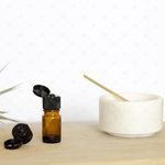 Scoate capacul cu orificiu și capacul de la sticla de ulei esențial și înlocuiește-l cu aceste capace tip flip top.