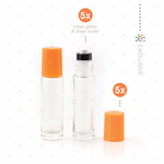 Conținut: 5 buc 10 ml sticluţe cilindrice transparente, cu capac Mandarină (portocaliu) și bilă din oțel inoxidabil, stil nou.