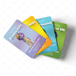 Alegeți un card (sau trageți unul la întâmplare), citiți-l împreună, apoi încercați activitatea recomandată. Este ideal pentru un „colț de liniște”, discuții de seară sau activități la clasă.