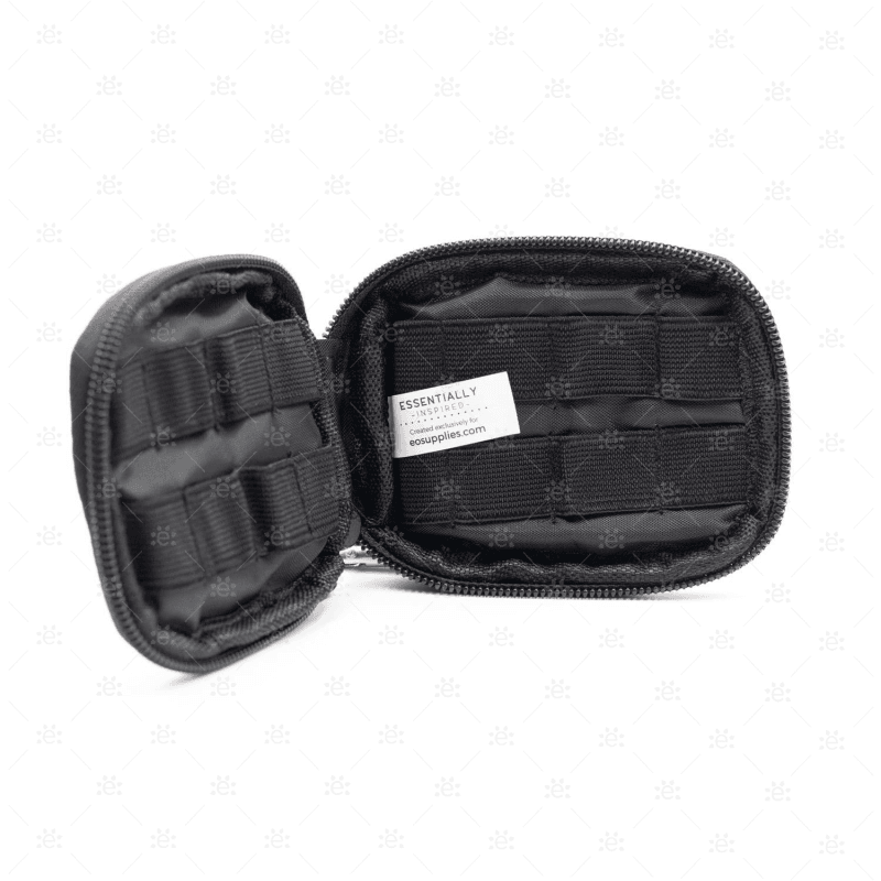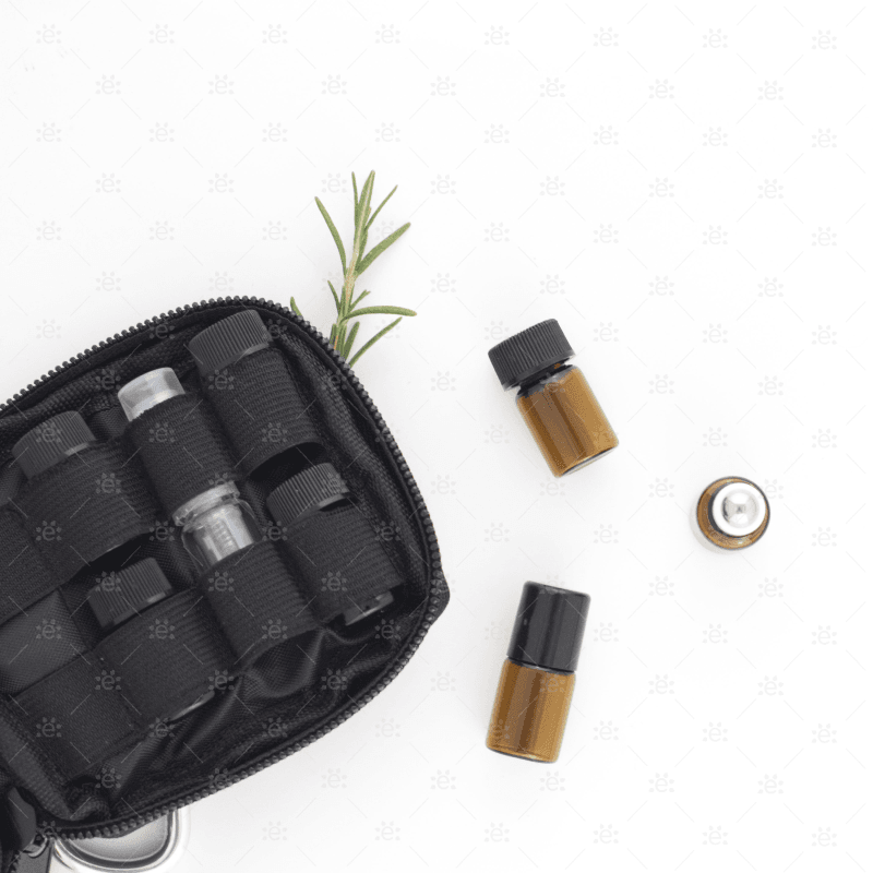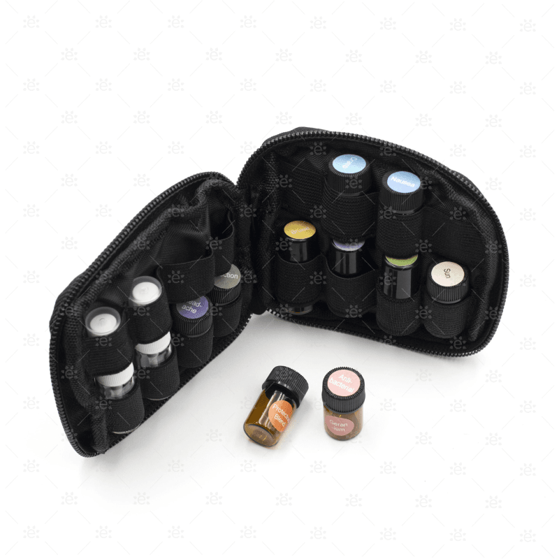 Gentuța este fabricată din neopren, este ușoară, are atașată o carabină și vine cu 3 sticle roll-on de culoare brună de 2 ml, 2 sticle transparente cu pulverizare fină de 3 ml și 9 sticle de culoare brună de 2 ml care se vor potrivi în interior și vor fi fixate cu benzi elastice.